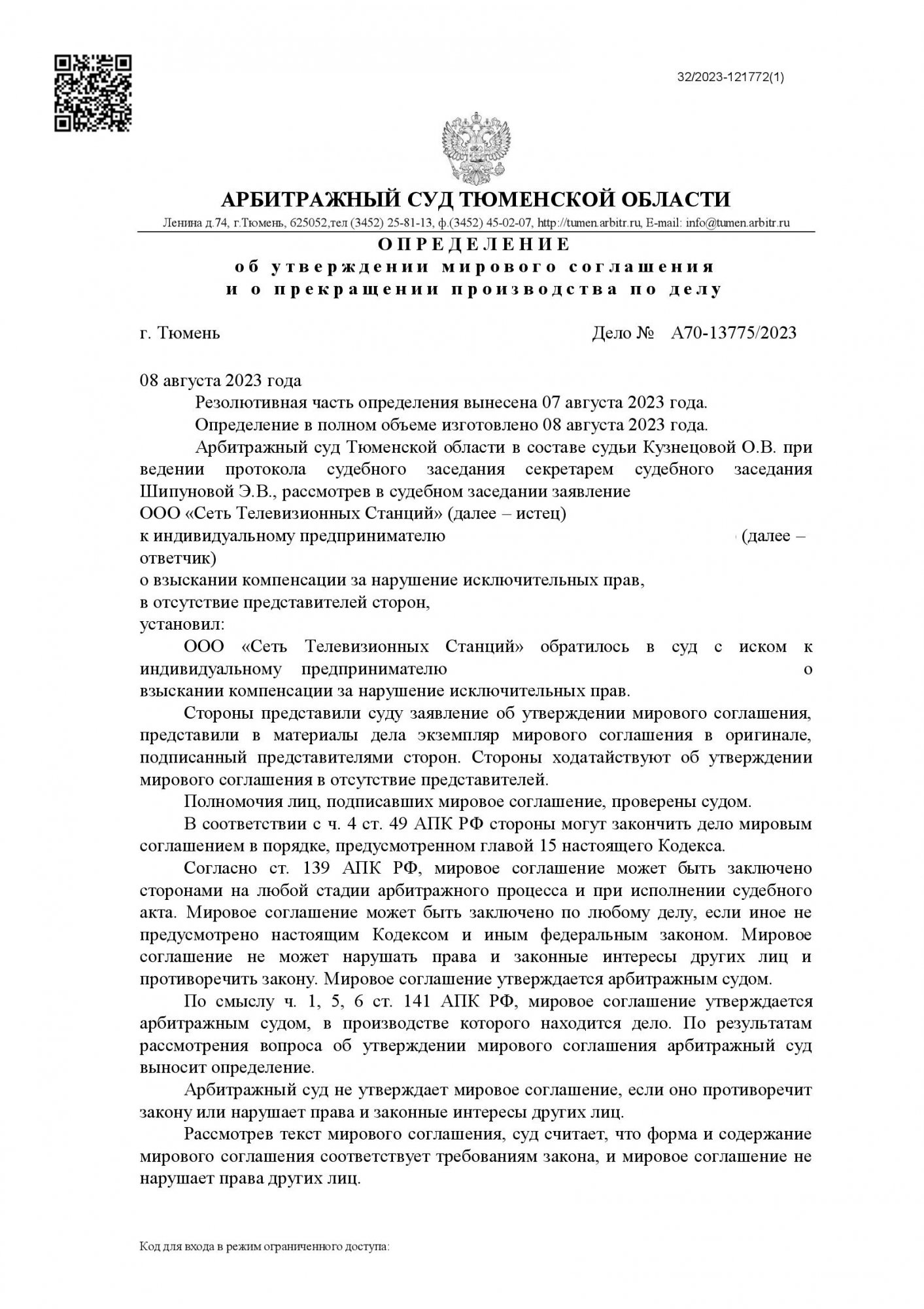 АО «Сеть телевизионных станций» обратился в Арбитражный суд г. Тюмени с иском к Индивидуальному предпринимателю с требованием о взыскании компенсации за нарушение исключительных прав на товарный знак и рисунок (изображение) «Карамелька» в размере 40 000 руб.